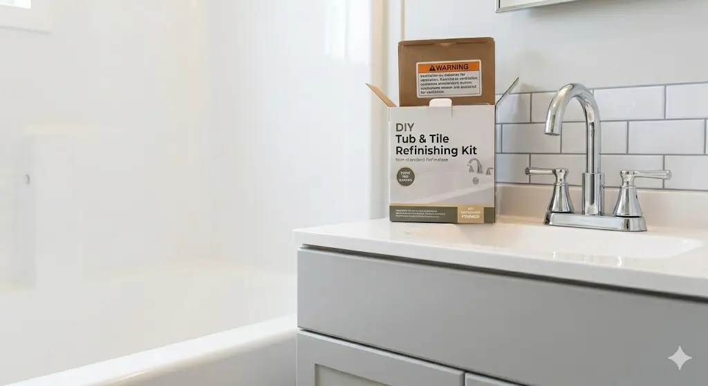 A yellowed or pink fiberglass tub is one of the most common mobile home eyesores — and replacing it is surprisingly expensive and difficult because of the non-standard size. A fiberglass/acrylic refinishing kit restores the tub to a bright white finish that lasts five to ten years with proper care. The kit chemically bonds to the ABS plastic surface and creates a hard, waterproof shell. Ventilate the bathroom thoroughly during application. This is one of the best value-for-money upgrades in any mobile home bathroom.